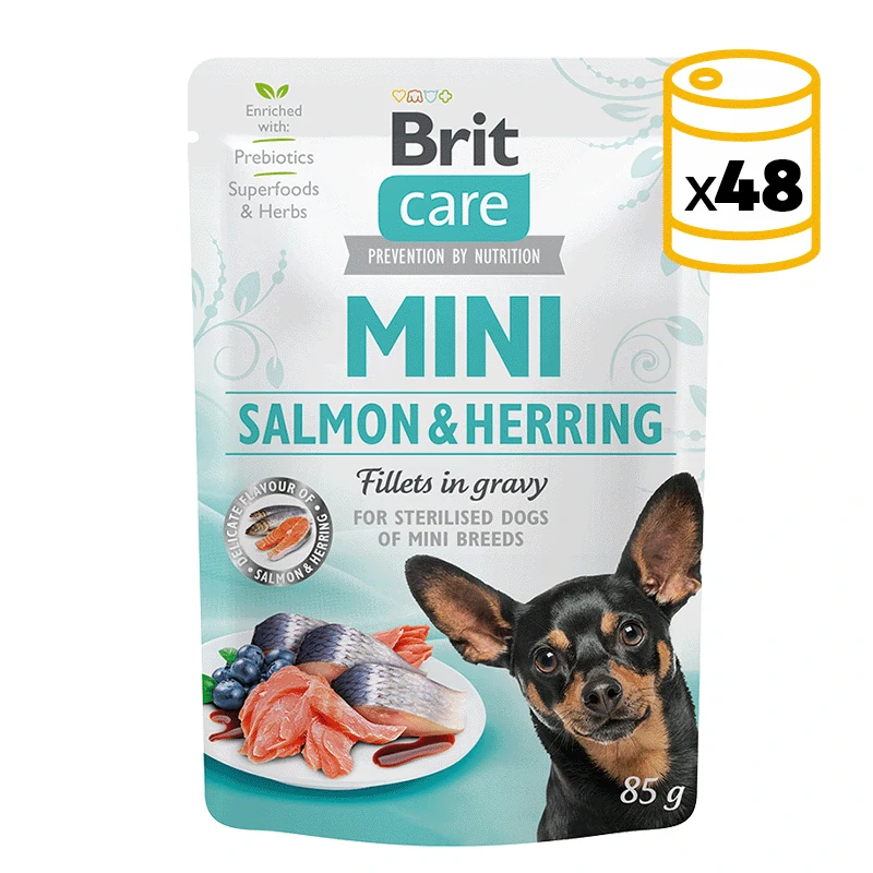 Brit Care Mini Salmon&Herring sterilised fillets in gravy 48x85gram voordeelbundel (1,25€ per zakje)