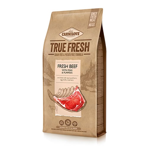 • Carnilove True Fresh Adult Dog Beef – met vers rundvlees, vol ijzer en B-vitaminen