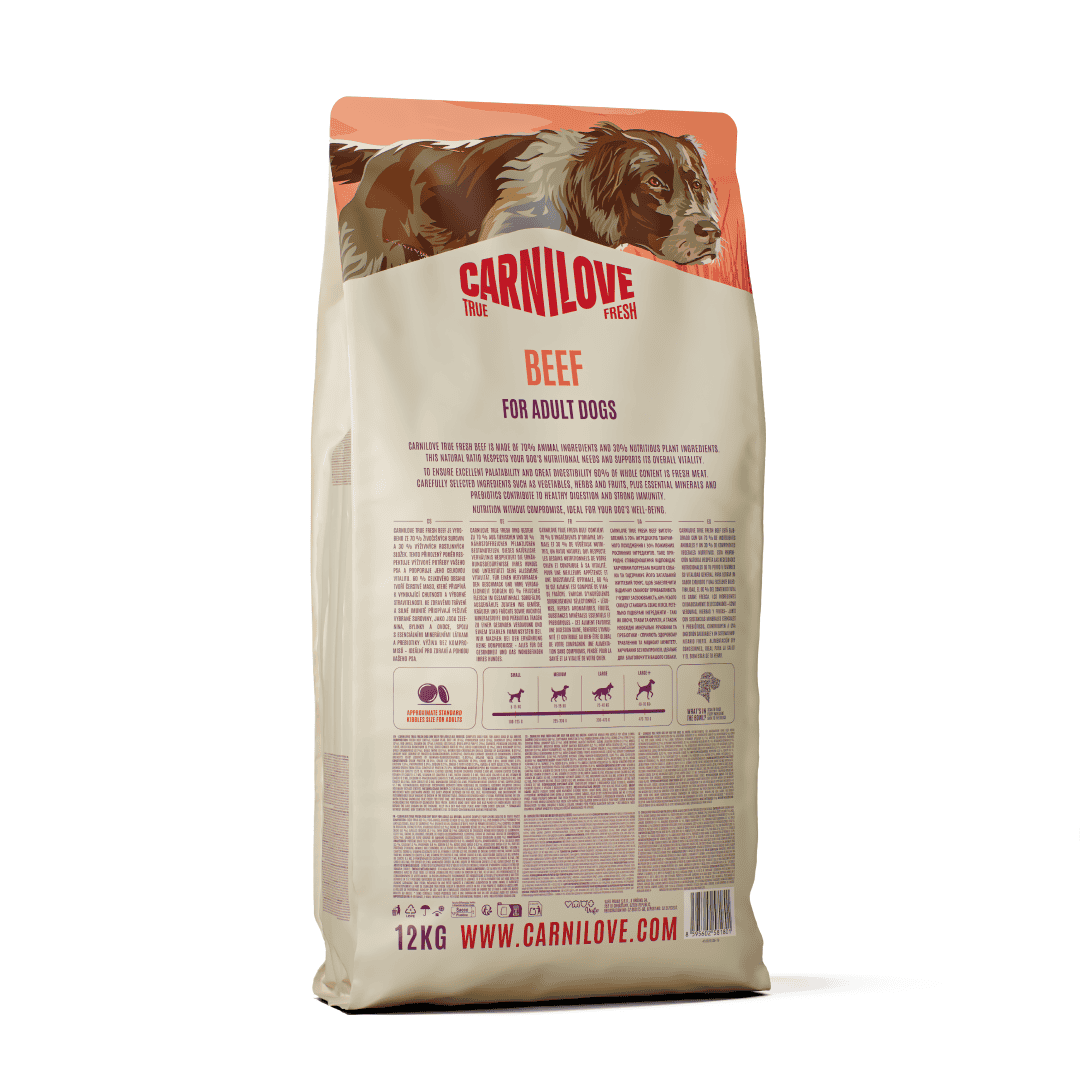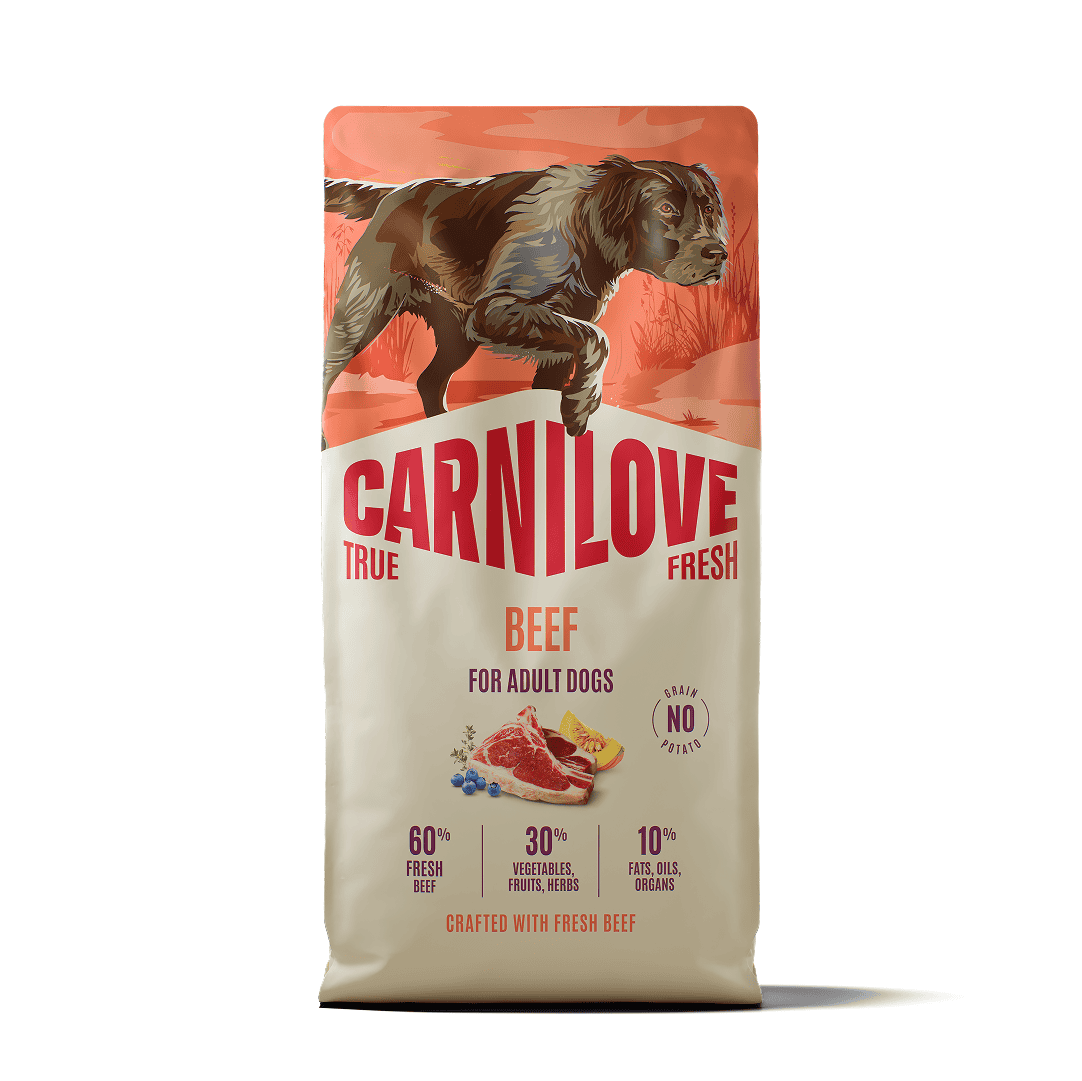 • Carnilove True Fresh Adult Dog Beef – met vers rundvlees, vol ijzer en B-vitaminen