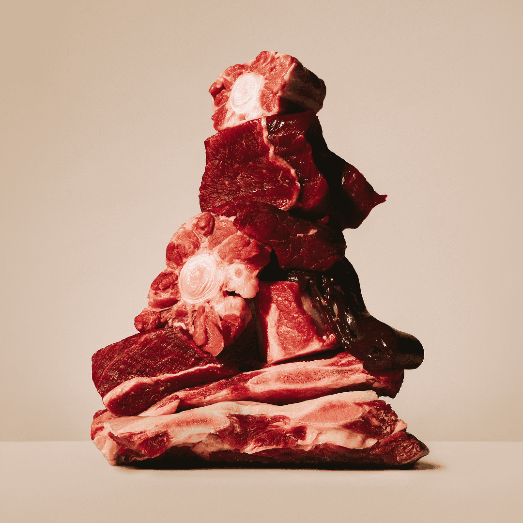 Samenstelling: vers rundvlees (60 %), gele erwten, rundvet (5 %), gehydrolyseerde lever (3 %), kikkererwten (3 %), pompoen (3 %), rode linzen, zalmolie (2 %), lijnzaad, eierschalen, gedroogde appelpulp (1,3 %), wortel, kaliumchloride, erwtenmeel, gedroogde duindoorn (0,2 %), gedroogde gemberwortel (0,1 %), gedroogde bosbessen (0,1 %), gedroogde rozemarijn (0,1 %), gedroogde veenbessen (0,1 %), gedroogde tijm (0,1 %), gehydrolyseerde schalen van schaaldieren (bron van glucosamine, 0,022 %), cichoreiwortel (bron van fructo-oligosacchariden, 0,0163 %), kraakbeen extract (bron van chondroïtine, 0,014 %), biergist (bron van mannan-oligosacchariden, 0,013 %), yucca schidigera (0,085 %).